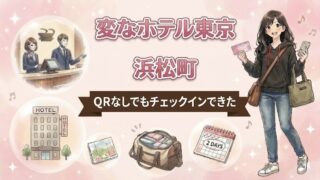 変なホテル東京 浜松町に一人で宿泊。QRコードが見当たらなくても名前でチェックインでき、困ったときは電話でスタッフを呼べて安心でした。荷物預かりロッカーの注意点、アクセス、客室の使い心地もまとめます。