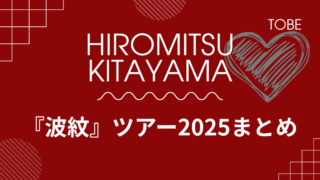 推し活 北山宏光『波紋 -HAMON-』ライブツアー2025完走!|日程・公演情報まとめ 北山宏光ソロツアー2025「波紋」全公演日程と会場情報をはじめ、アルバム『波紋』の詳細、千葉ファイナル公演の記録、岡山公演映像、インスタライブまで収録したファン必見の保存版アーカイブ。ツアーを追体験できる感動のまとめです。 2025.04.08 推し活