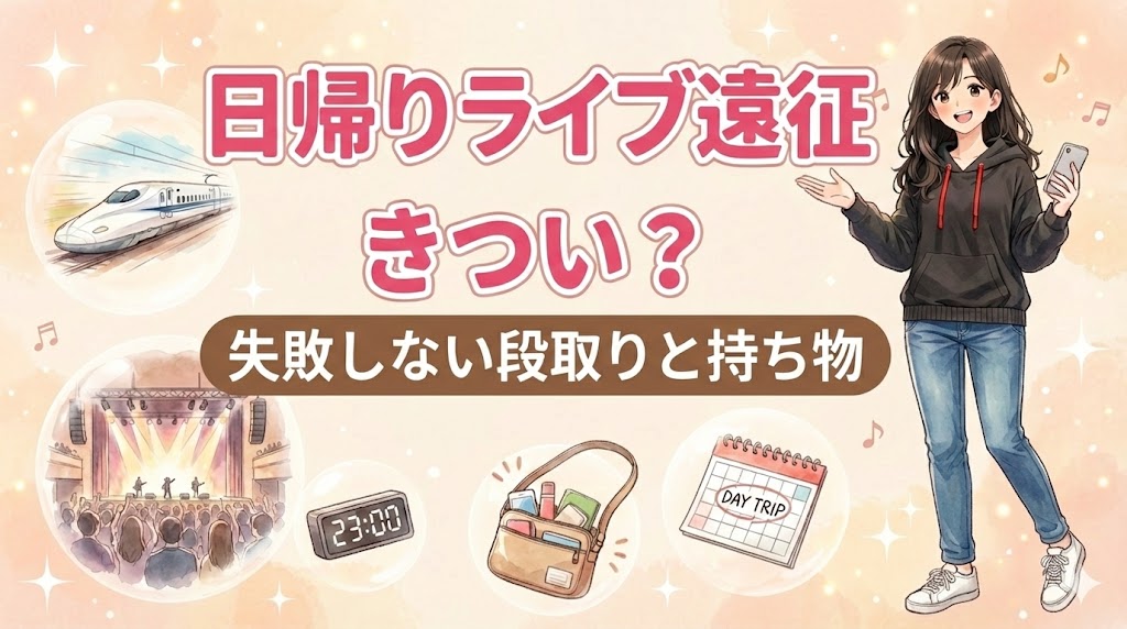 初めてのライブ遠征、「日帰りってできる?」「帰れなかったらどうしよう…」と不安になりますよね。
