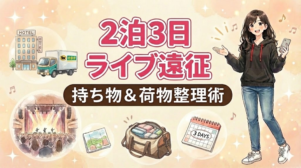 この記事では、実際に使った宅急便サービスの流れや料金の目安、衣類・スキンケア・ライブグッズなど、2泊3日を快適に過ごすためのリアルな準備術をまとめました。