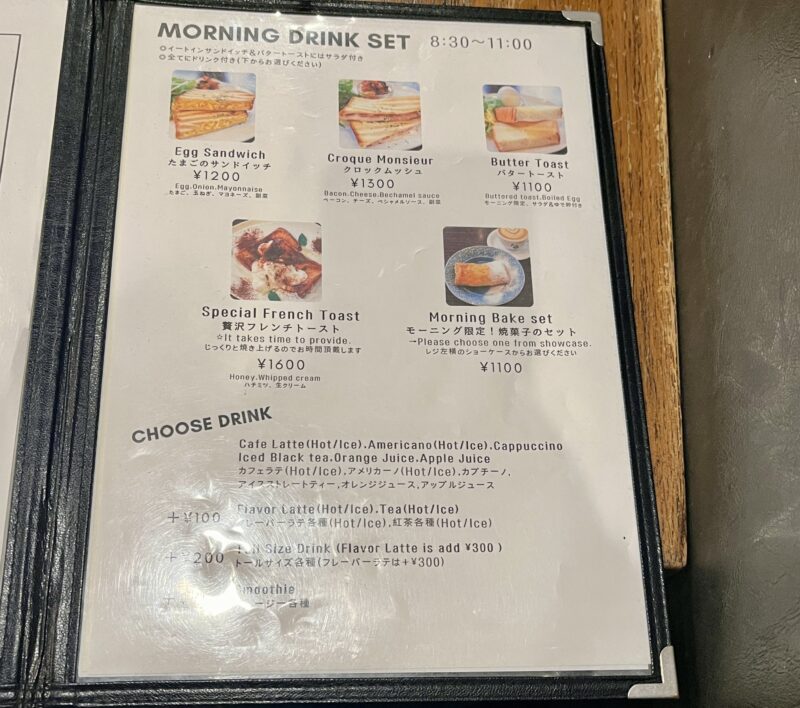 価格帯は1,100円〜と、カフェモーニングとしては比較的リーズナブル。