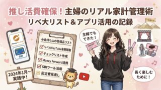 成長記録 推し活費は増えた?アラフィフ主婦が家計管理を1年続けたリアルな結果【2024年】 家計管理1年目のリアルな記録。住信SBIネット銀行や楽天NISAの活用から、通信費の見直し・家計簿アプリ導入、カード整理まで。アラフィフ主婦が試行錯誤しながら整えた、暮らしとお金の“現実的な整え方”をまとめました。 2025.05.11 成長記録
